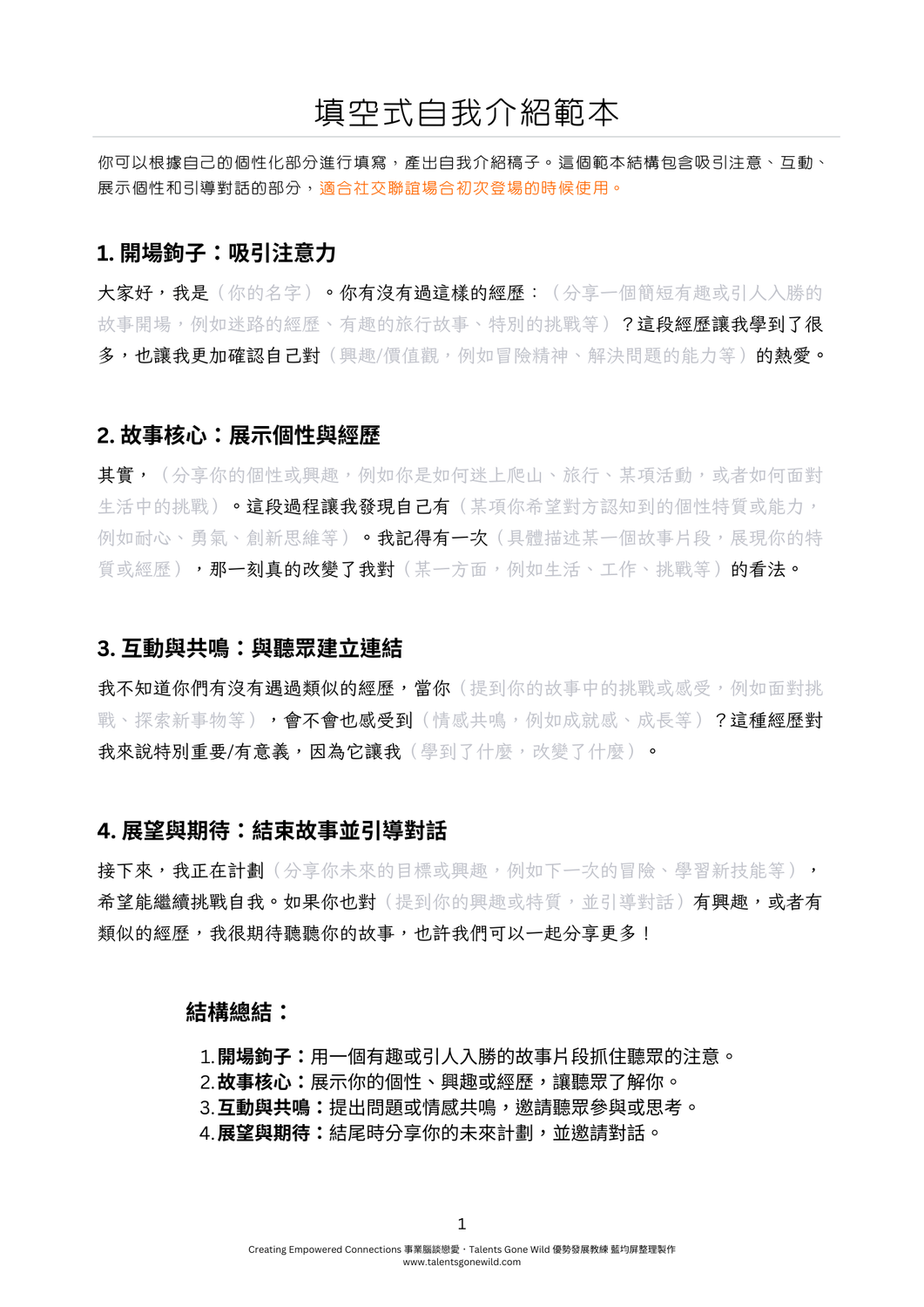 只要照著範本填空,讓你在社交聯誼場合的自我介紹不再普普通通!